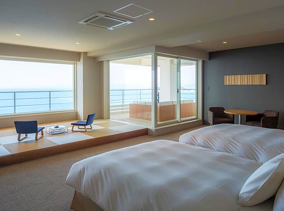 客室, シングルベッド2台, 布団, オーシャンビュー