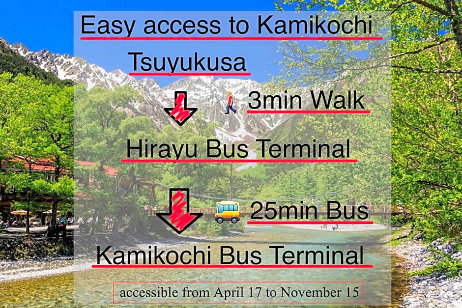 Adventure abounds just outside your doorstep! Ski enthusiasts will be thrilled with the nearby slopes, while those with a penchant for scenic hikes can explore the lush trails that showcase the region's natural beauty. And after a day filled with activities, what could be better than retreating back to your comfy haven? Picture yourself soaking in a hot spring under the stars, surrounded by the majestic mountains of Okuhida—this is just a glimpse of what your stay at Tsuyukusa has to offer! So pack your bags and get ready for an unforgettable journey filled with culture, relaxation, and plenty of smiles.