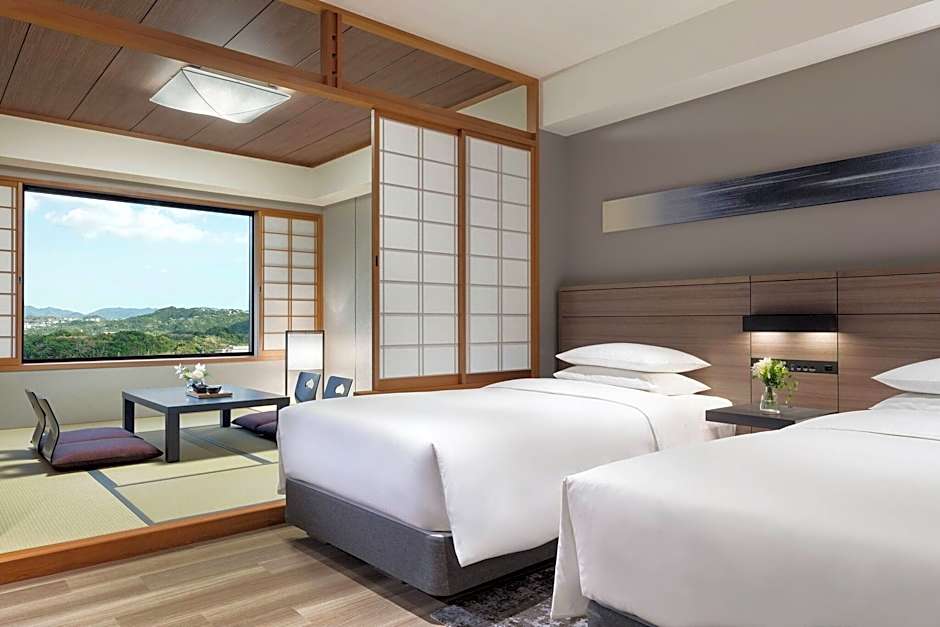 This twin room is air-conditioned and features a shared bathroom, tatami and city views. The unit offers 1 bed.