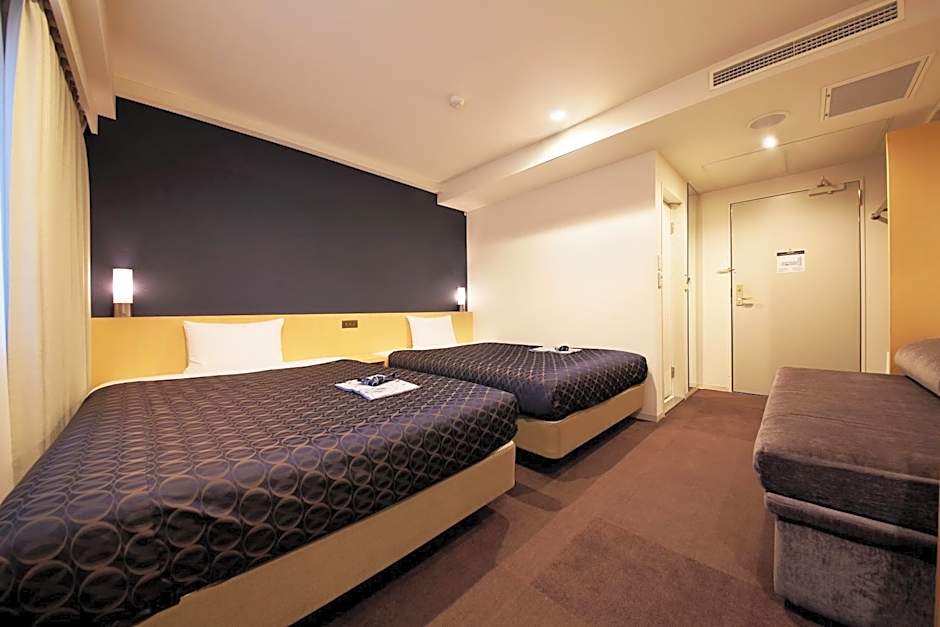Superior twin room Smoking is 215 square feet and includes 2 single beds 80-130 width plus extra beds on demand, desk, hairdryer, and slippers.