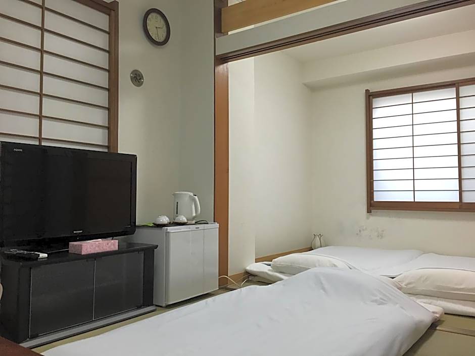Comfy futons on tatami mats. Rooms cleaned every day with fresh towels. We arrived really early from Kyoto and the hosts let us wait in the upstairs breakout room while our room was getting sorted. A real mom 'n pop type place, where you could use the communal kitchen, laundry etc. Its an old building so don't expect shiny and modern. Was really close to the station and lots of cheap grocery shops around if you wanted to make your own meals.