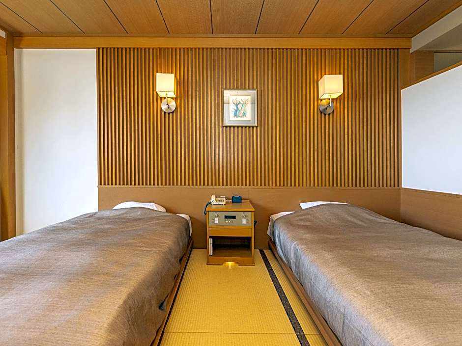 The twin room features air conditioning, tatami, as well as a private bathroom boasting a bath and a shower. The twin room provides an electric kettle, a yukata, heating, as well as a flat-screen TV. The unit has 2 beds.