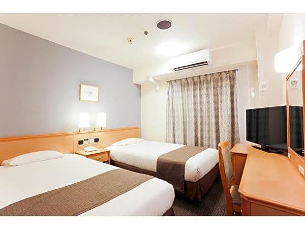 Smile Hotel Wakayama offers a Twin Room (smoking and non-smoking) with a room size of 161 sqft, accommodating 2 adults with 2 twin beds. They also have a Single Room (smoking and non-smoking) with a room size of 129 sqft, accommodating 1 adult with 1 twin bed.