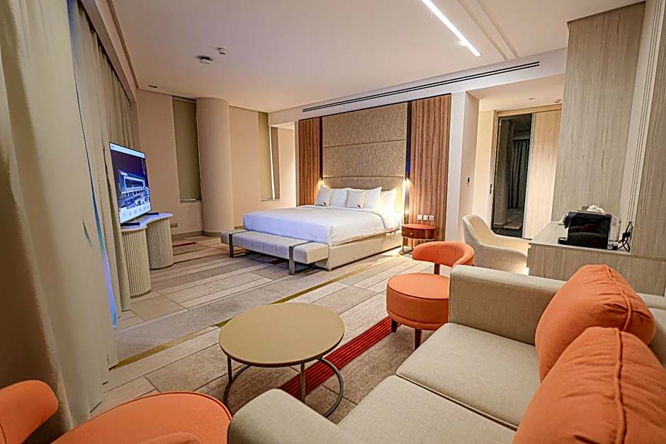 This spacious suite consists of 1 bedroom, a seating area and 1 bathroom with a walk-in shower and a bath. The air-conditioned suite provides a flat-screen TV with cable channels, soundproof walls, a mini-bar, a tea and coffee maker as well as city views. The unit offers 1 bed.