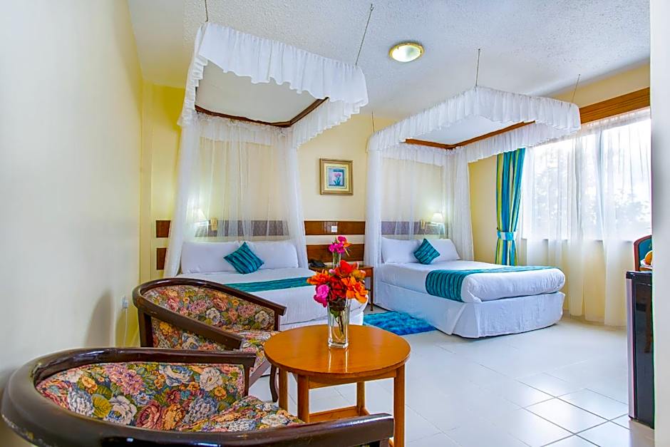Sportsview Hotel Kasarani offers Deluxe Double Rooms and Standard Double Rooms. The Deluxe Double Rooms are 258 sqft, with a queen size bed, and accommodate 2 adults and 2 children. Smoking is not allowed. The Standard Double Rooms are 194 sqft, with a double bed, and also accommodate 2 adults and 2 children, and smoking is not allowed.