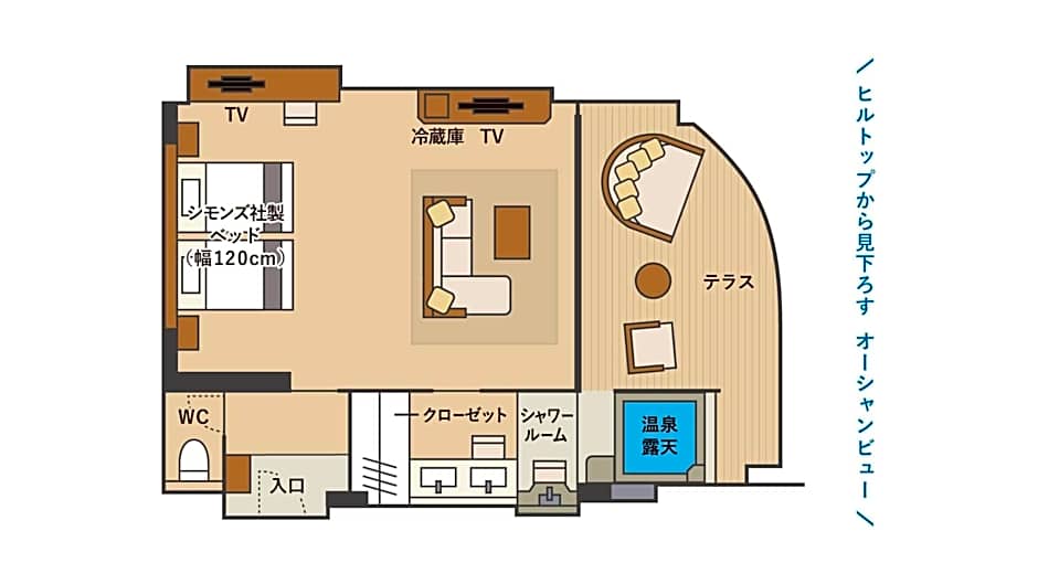 구내 식사는 레スト랑 #1(프랑스 레스토랑)을 중심으로 이루어지며, 이즈노쿠니의 저녁에 파리식 시크함을 더합니다. 해변을 탐방하거나 정원에서 휴식을 취한 하루 후 이곳에서의 세련된 식사는 고요한 분위기와 정원 전망과 잘 어울립니다.