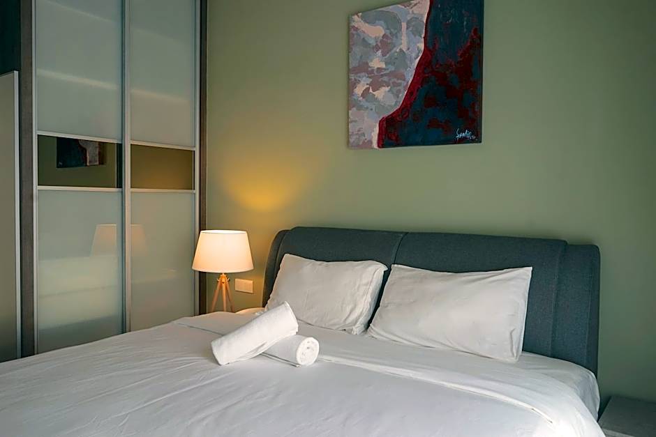 This apartment has a seating area and sofa. The 2-bedroom apartment features a flat-screen TV with Astro cable programming.