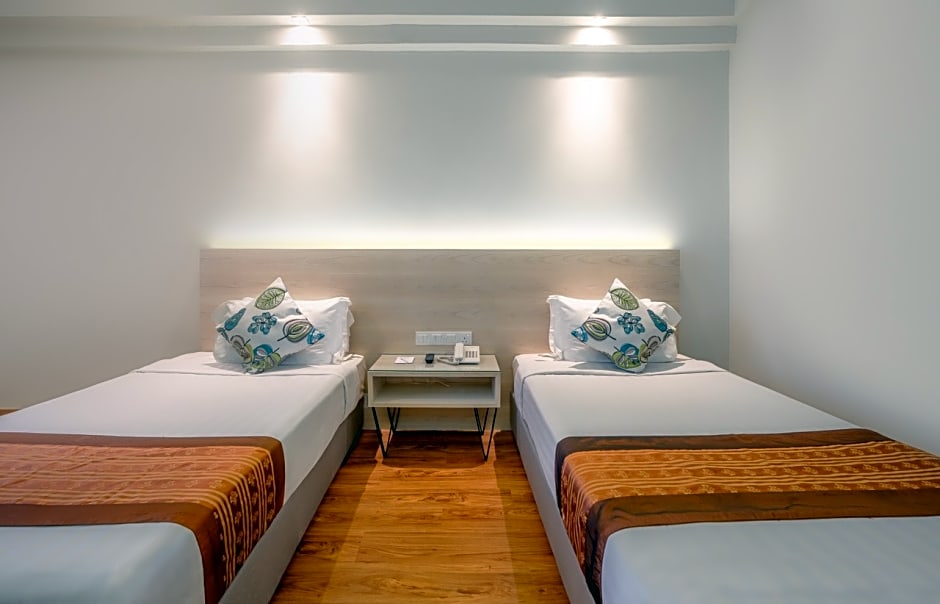 Indulge in the spacious Crown Studio Double or Twin Room, spanning 323 sqft and accommodating 2 adults and 1 child. Enjoy the comfort of 2 twin beds and 1 king size bed, along with luxurious amenities like air conditioning and a private bathtub.