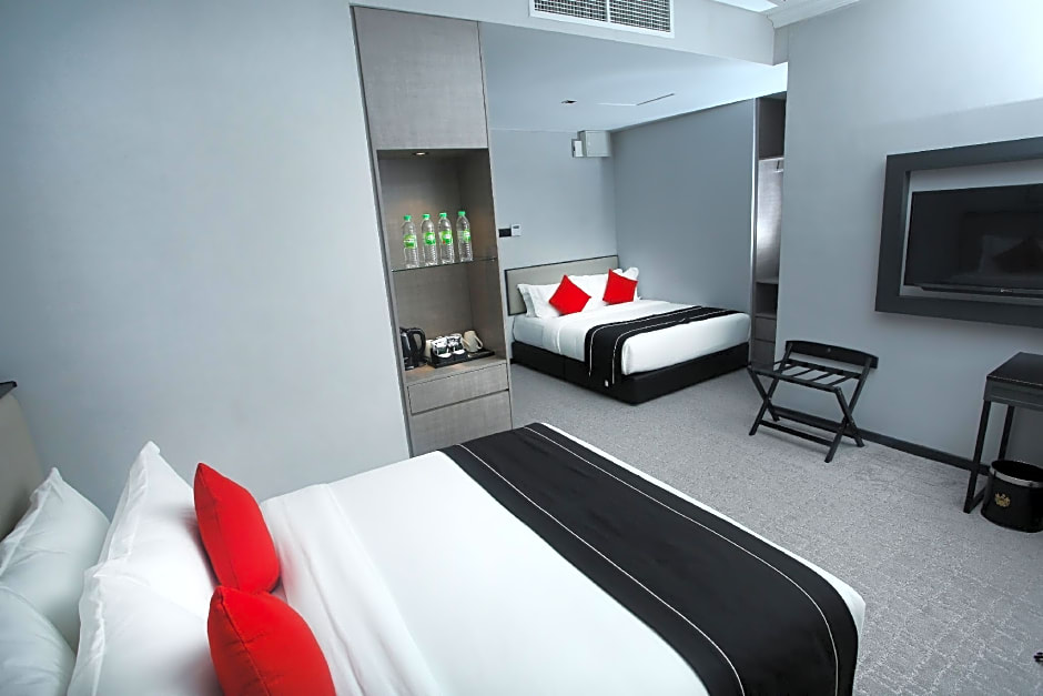 Room options cater to solo travelers, couples, and families alike. Deluxe Queen Room provides 280 square feet of space with one Queen bed, accommodating 2 adults and 1 child. For larger groups, Deluxe Family spans 301 square feet with two Queen beds and space for 4 adults and 1 child. The Superior Family offers 334 square feet, combining a Twin bed and a Queen bed for 3 adults and 1 child. The Standard Queen Room covers about 194 square feet and accommodates 2 adults and 1 child. The Superior Twin Room is 205 square feet with two Twin beds, comfortable for 2 adults and 1 child.