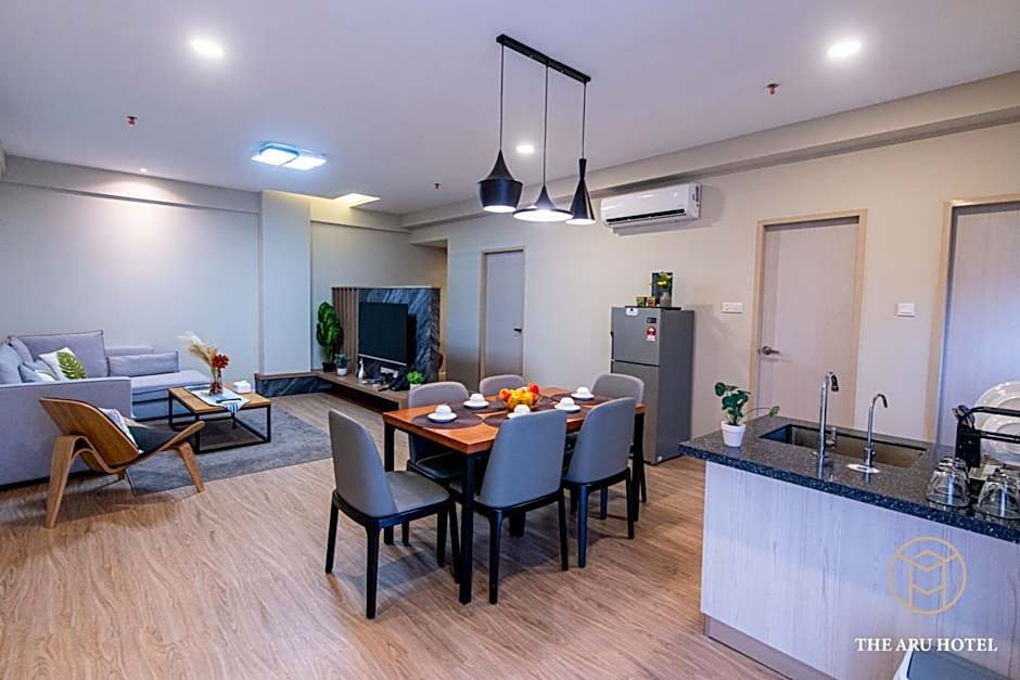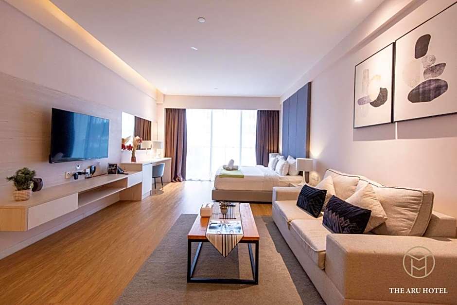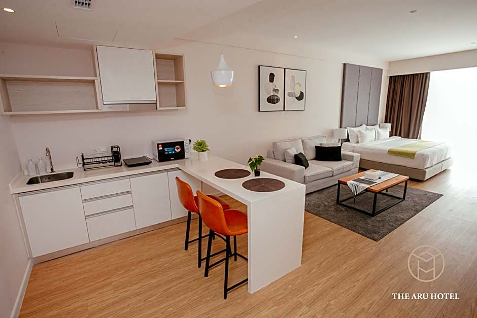 The Aru Hotel at Aru Suites offers a variety of room options including Sea View Deluxe Rooms and King Studios, both of which are studio-style rooms with a size of 560 sqft and can accommodate 2 adults and 1 child. The Two-Bedroom Executive Suite and Three-Bedroom Family Suite are larger options, with sizes of 1012 sqft and 1302 sqft respectively. The Executive Suite can accommodate 4 adults and 3 children, while the Family Suite can accommodate 6 adults and 5 children. No smoking is allowed in any of the rooms.