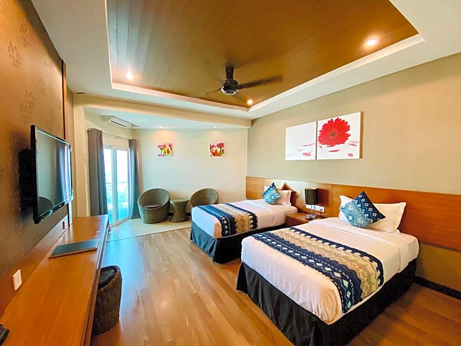 The Langkawi Seaview Hotel offers a variety of room types. The Premier Deluxe Room accommodates 2 adults and 1 child with a King size bed. The Family Room with Balcony is suitable for 4 adults and 1 child, featuring 2 King size beds. The Suite is designed for 2 adults and 1 child, with a King size bed. Additionally, the hotel offers a Superior Double Room with a King size bed for 2 adults and 1 child, and a Superior Twin Room with 2 Twin beds for 2 adults. All rooms are non-smoking and have a size of 269 sqft, except for the Suite which is 377 sqft.