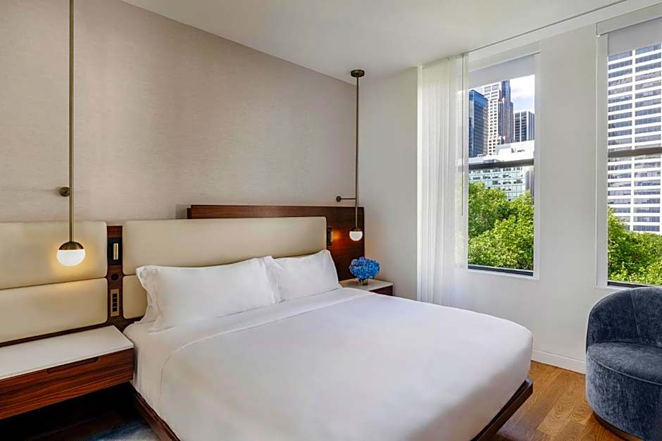 A rooftop outdoor pool offers a playful retreat above the city, complete with a refreshing plunge and sweeping views. Availability is all-season, so sunshine or drizzle won’t slow down the splash. For extra convenience, shuttle services (including airport shuttle) are available for an additional fee.