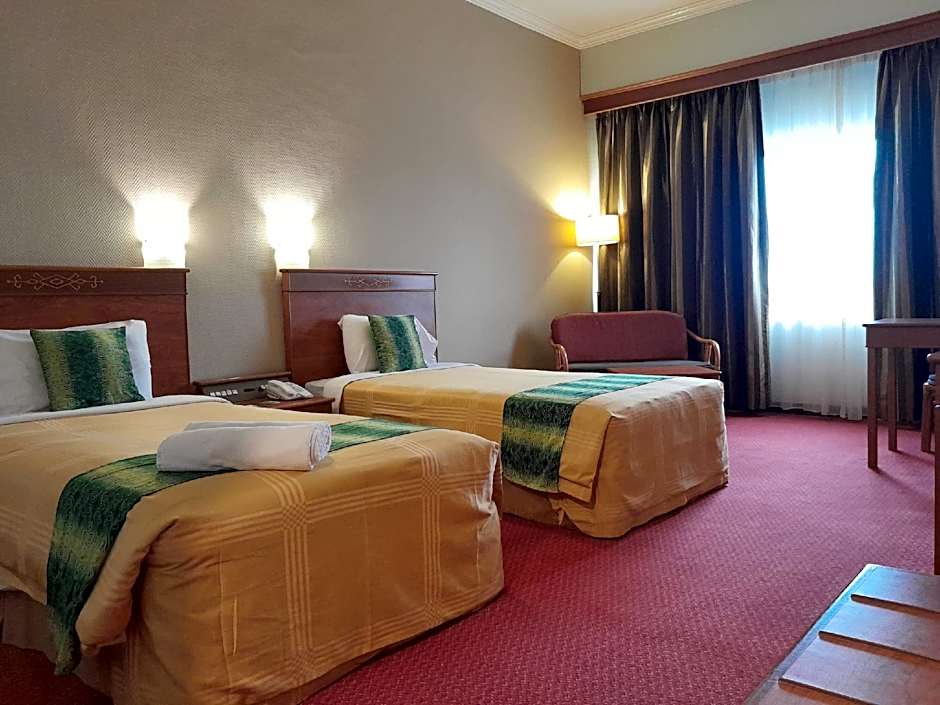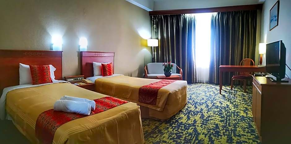 Hotel Grand Continental Kuching offers a variety of room options. The Deluxe Family Room accommodates 3 adults and 1 child with 1 twin bed and 1 king-size bed. The Deluxe Triple Room accommodates 3 adults and 1 child with 3 twin beds. The Deluxe Twin Room accommodates 2 adults with 2 twin beds. The Suite accommodates 2 adults and 1 child with 1 king-size bed. The Premium Double or Twin Room accommodates 2 adults and 1 child with 1 king-size bed and 2 twin beds. The Deluxe Double Room accommodates 2 adults and 1 child with 1 king-size bed. Smoking is not allowed in all rooms.