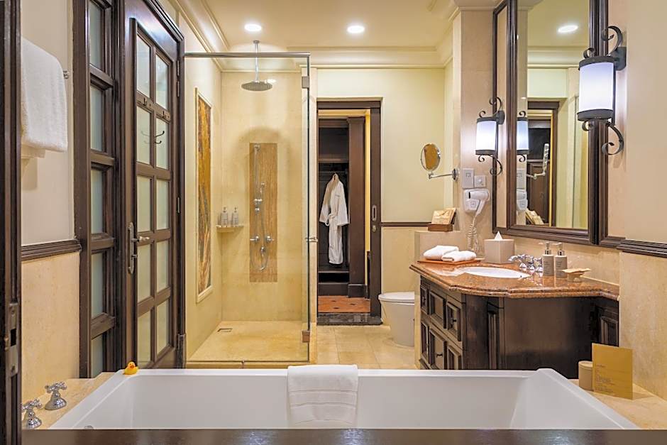 This air-conditioned two-bedroom suite also has a fan option. It features a front-entry balcony that opens up to views of the Melaka River. The master bedroom is equipped with a window sofa. The separate living room is fitted with a flat-screen cable TV and sofa. There is a dining area. The private bathroom includes a bathtub, hairdryer and free toiletries. Ironing facilities are available.