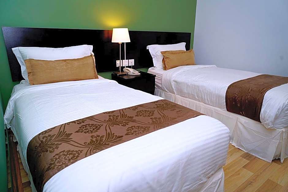 Alami Garden Hotel offers a variety of room types including Double, Twin, Family, and Apartments with different bed configurations such as Queen-size, Twin, and Sofa beds. The rooms range in size from 129 sqft for the Standard rooms to 1076 sqft for the Apartment with balcony. Smoking is not allowed in any of the rooms. Occupancy accommodates anywhere from 2 to 6 adults, plus 1 child depending on the room type.