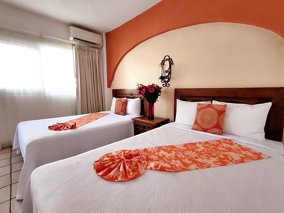 Spacious, air-conditioned room with 2 double beds and a balcony offering views of Puerto Vallarta. In-room amenities include cable TV and a telephone. The private bathroom has a shower.