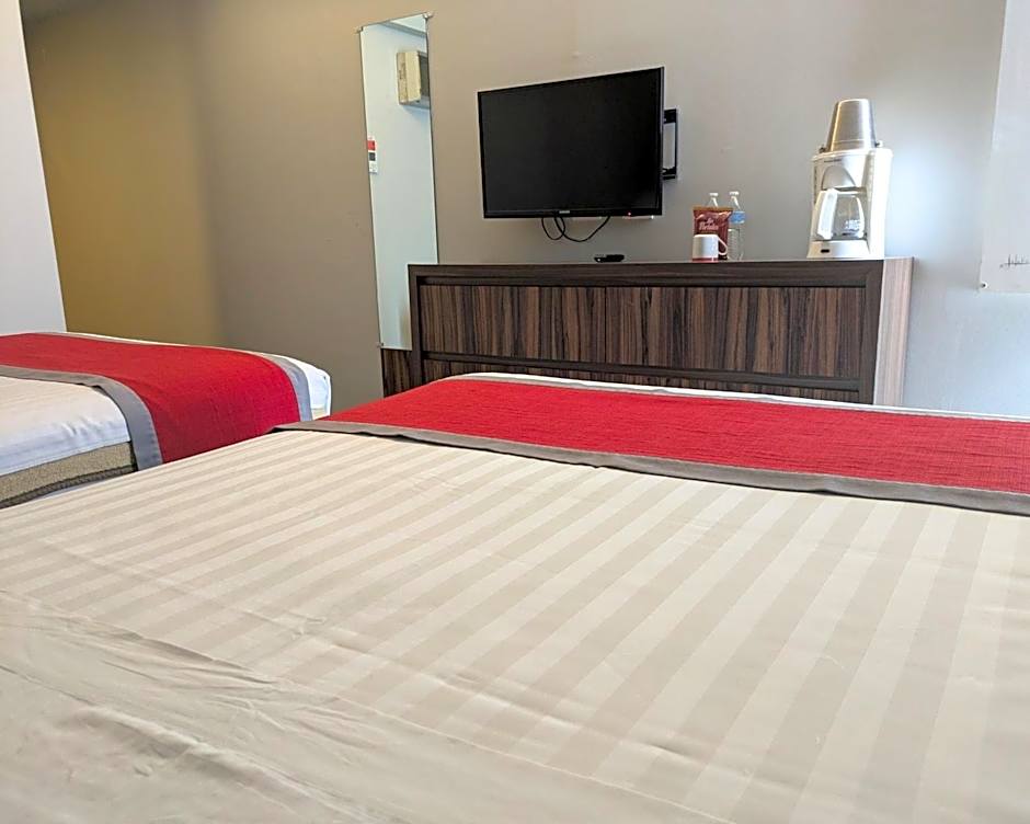 This room has two double beds, flat TV and free WiFi.