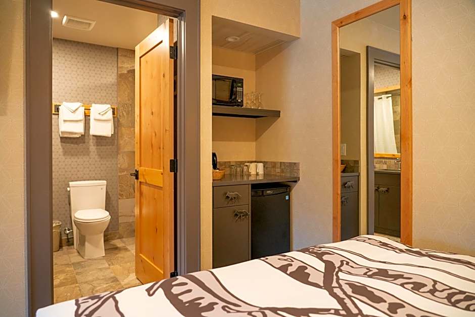 One Bedroom Suite, up to 4 adults or 2 adults and 2 kids, king-size bed with an adjoining spa bathroom complete with an indoor jetted tub and separate walk-in shower. A second bathroom, a spacious living area featuring a Murphy bed, and a well equipped kitchen, washer/dryer, and private terrace or balcony.