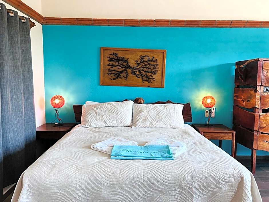 What are the room types available at Villa Los Corales?