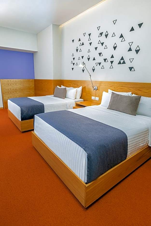 The Hotel México Plaza Querétaro offers two types of rooms: the Double Room with Two Double Beds and the King Room. The Double Room has a size of 291 sqft and can accommodate 4 adults and 2 children, with 2 double beds. The King Room has a slightly larger size of 301 sqft and can accommodate 2 adults and 1 child, with 1 king-size bed. Smoking is not allowed in both room types.
