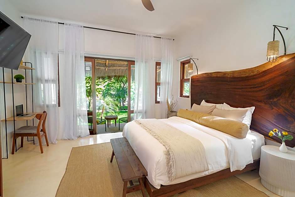 Mi Kasa Tu Kasa Bacalar offers a Superior King Suite with a size of 1055 sqft, a Queen Room with Garden View with a size of 366 sqft, and a Deluxe Suite with a size of 452 sqft. Smoking is not allowed in any of these rooms. All rooms accommodate 2 adults and 1 child, and the available beds range from king size to queen size.