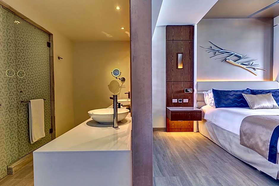 But the fun doesn’t stop there! The Royalton CHIC Cancun boasts stunning beach umbrellas and loungers for basking under the Mexican sun. Embrace peace of mind with free Wi-Fi, 24-hour front desk service, and ample parking. With a garden and sun deck to unwind, plus sauna and massage treatments available for a little extra pampering, this adults-only haven is designed for relaxation and romance. Whether you’re planning a getaway with friends or a romantic escape, this resort is sure to exceed your expectations!