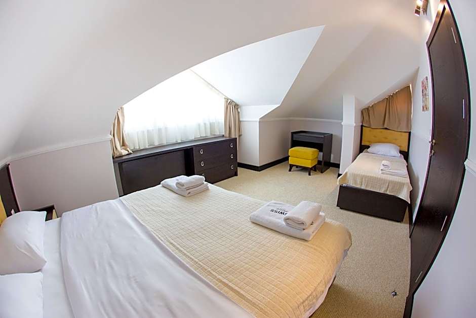 Overall, Hotel Swiss Holiday provides a range of leisure amenities, including a hot tub, bar, and restaurant, allowing guests to relax and enjoy their stay comfortably.