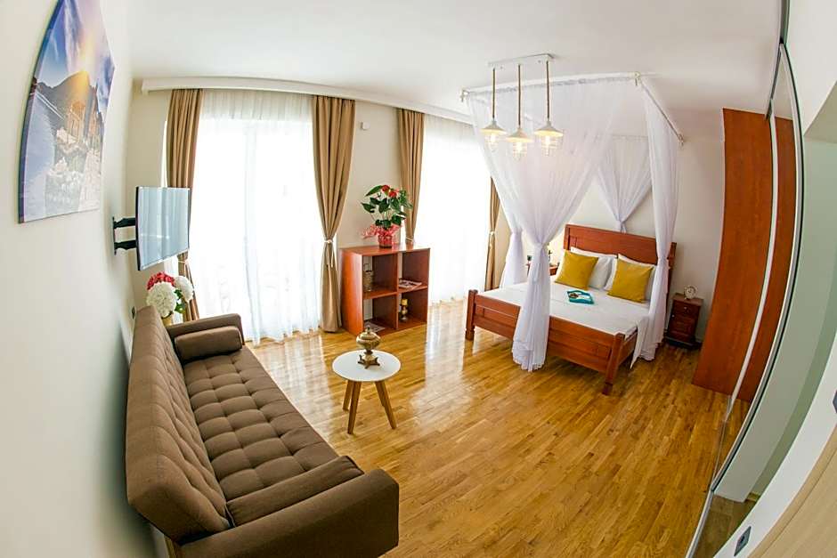 Welcome to , a delightful 4-star guest house nestled in the heart of Budva, Montenegro! Just a zipper away from the bustling city center—only away—this charming oasis is perfect for travelers seeking a blend of adventure and relaxation. Picture yourself sipping cocktails on the sun deck or indulging in horseback riding under the Mediterranean sun. With rooms that promise soundproof serenity and free air conditioning, you'll feel right at home while exploring the vibrant surroundings.