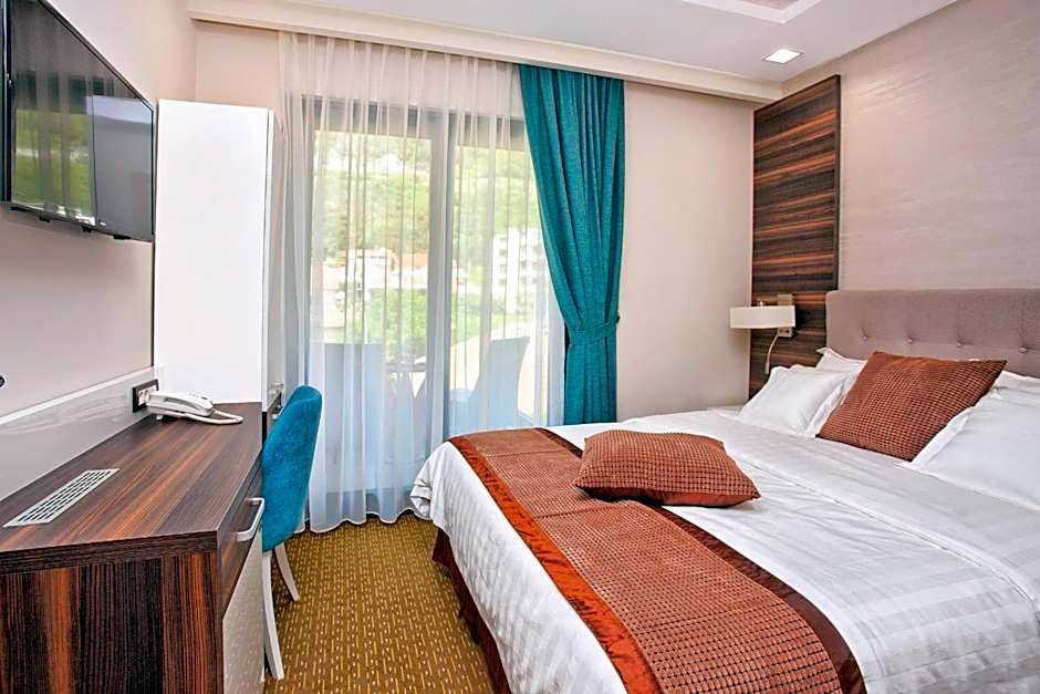 Amenities blend convenience with relaxation: on-site restaurant, free Wifi, and free private parking, plus a fitness center and a range of spa options including a Turkish/Steam Bath (free), steam room, and sauna (free). Rooms feature air conditioning, balconies with mountain or garden views, and soundproof walls, with non-smoking options, beach chairs/loungers, kitchenette and kitchen facilities, and a terrace for unwinding.