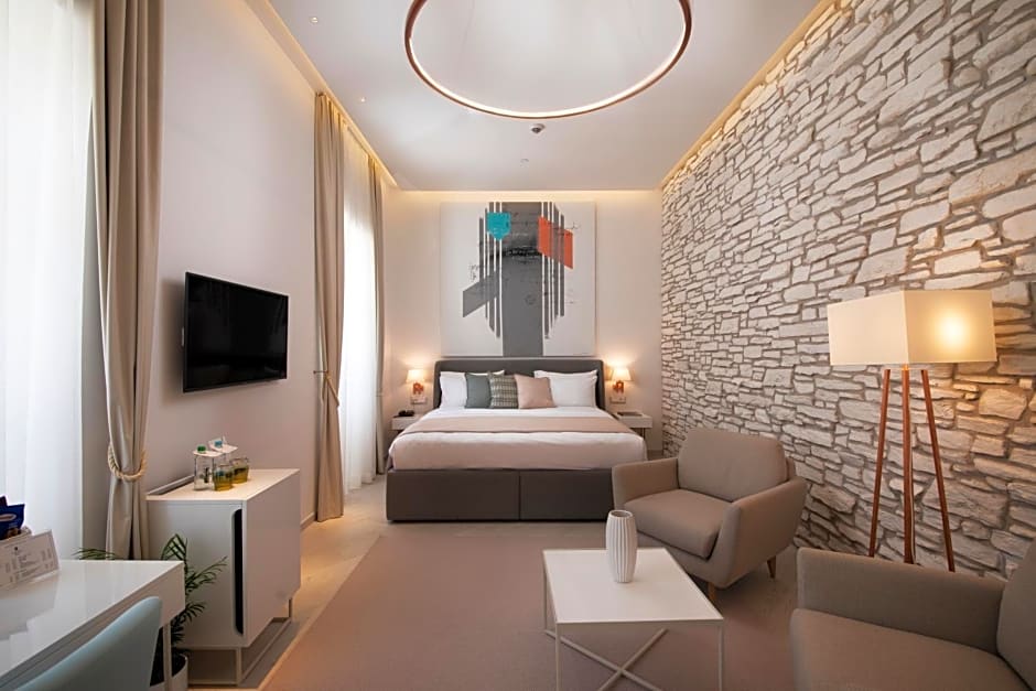 DELUXE ROOM HISTORICAL BUILDING is 377 square feet and includes either a double bed 131-150 width or a king-size bed 150-183 width plus extra beds on demand.