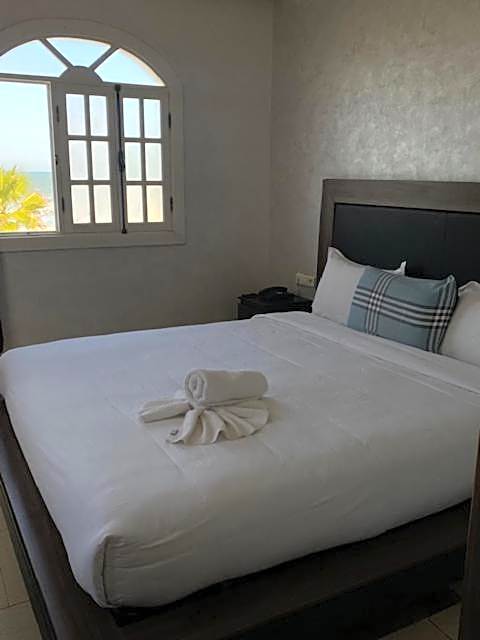 Outdoor spaces feature a beach, sun deck, garden, and free beach umbrellas. Parking on site is free, and the layout includes soundproof rooms for quieter nights. A shuttle option is available for extra charges if needed. The address, location, and a long list of amenities make AMWAJ HOTEL a lively beachfront base for exploring El Jadid and Morocco.