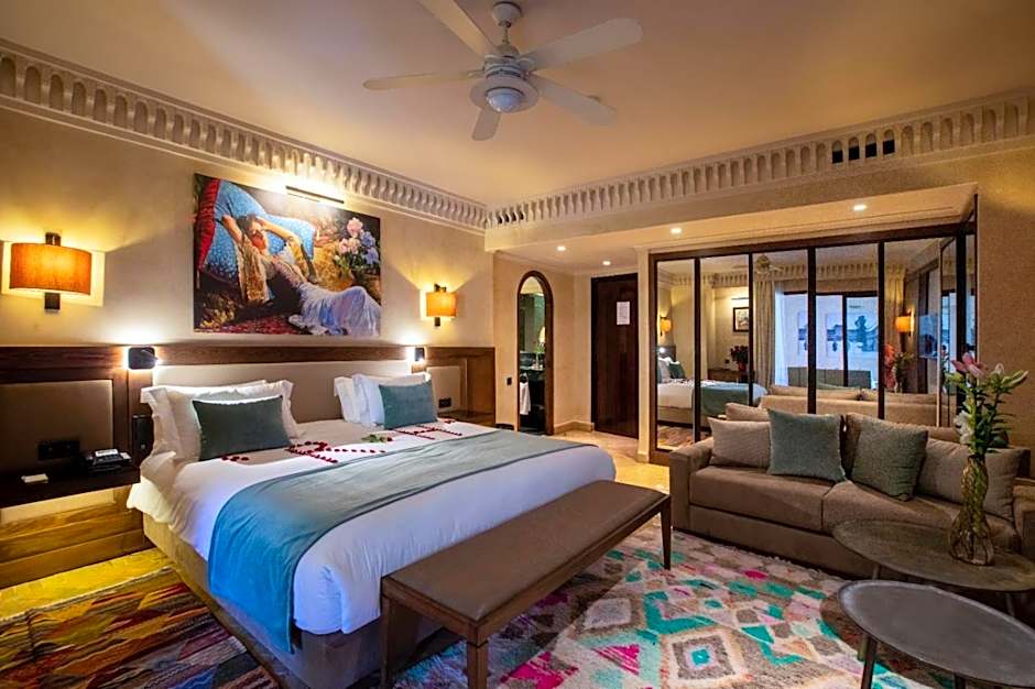 This air-conditioned room includes a mini-bar and a private bathroom. The room features archways of Moroccan architecture.