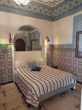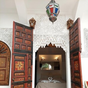 Riad Alma Mouassine is a 4-star retreat in Marrakesh, Morocco, just 0.7マイル from the city center. Located at 56, Derb Chorfa Lakbir Mouassine, this stylish property blends traditional charm with modern comforts for a memorable stay.