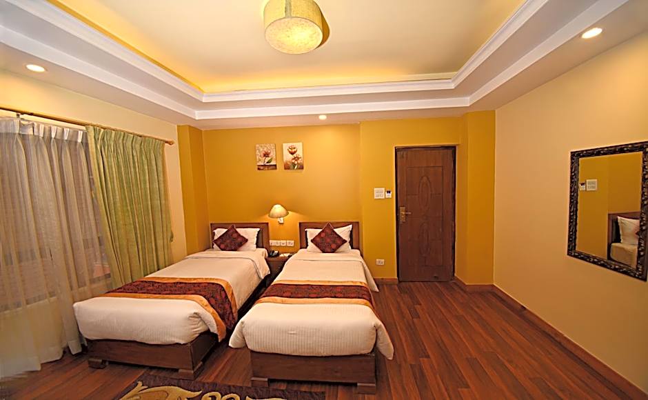 Reviews total 214, signaling a well-loved four-star option in Kathmandu. Breakfast is included and the address sits at Paknajol Marg, Thamel, in easy reach of the city’s highlights. A sun deck awaits for planning the next Kathmandu adventure.