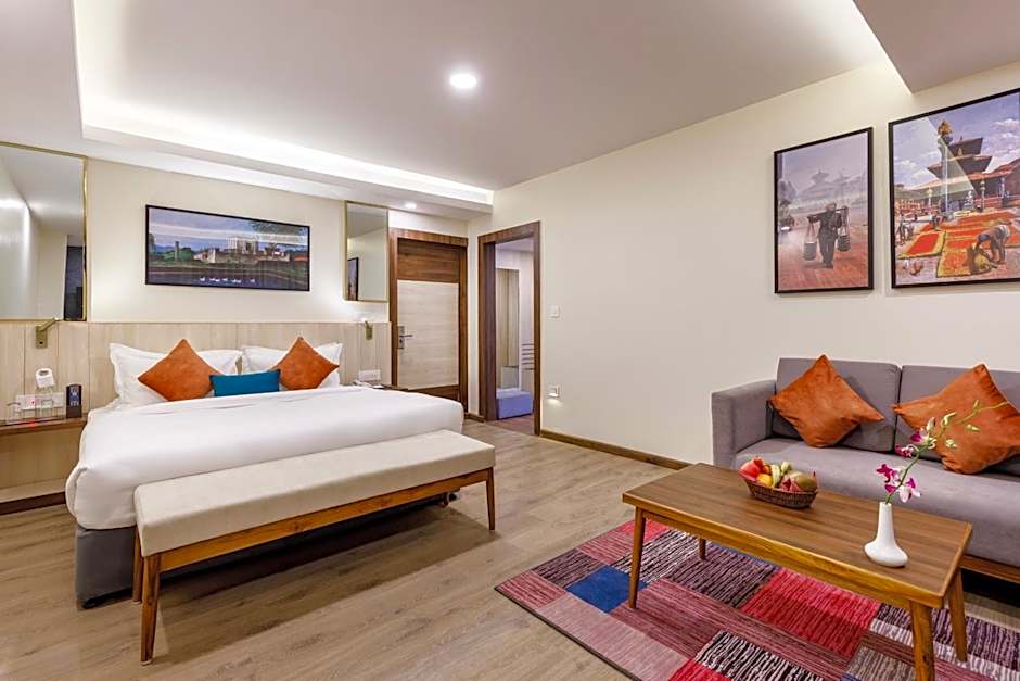 An outdoor rooftop infinity pool, adults-only, offers sweeping city views—an ideal backdrop for a sun-filled day in Kathmandu. Terrace and patio spaces provide relaxed spots to sip a coffee or a sunset cocktail, while free live music performances add a cheerful note. Wellness options include a fitness center and a steam room, with spa services available for an extra charge.