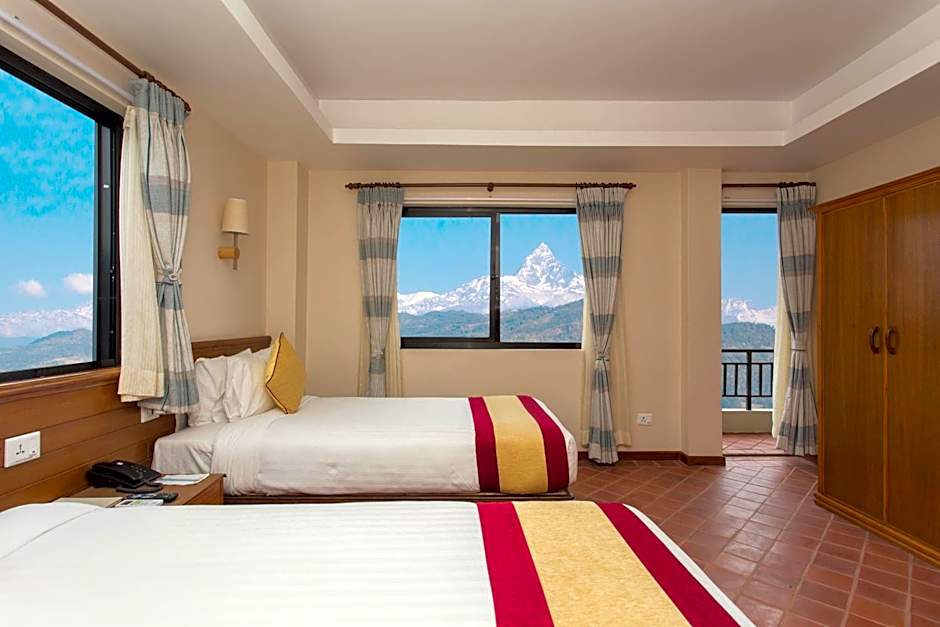 Address: Multhok Path, Lakeside, Pokhara. The property has 12 reviews. Amenities include a restaurant, outdoor swimming pool, free private parking, free Wifi, room service, terrace, balcony with mountain or garden views, air conditioning, non-smoking rooms, free toiletries, bathtub, soundproof rooms, and on-site parking.
