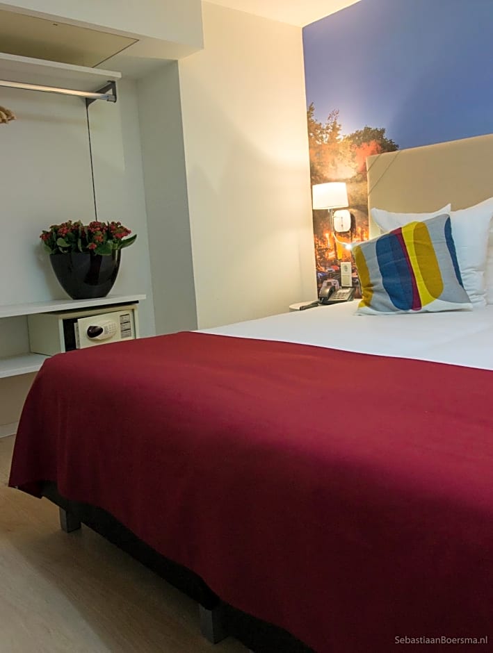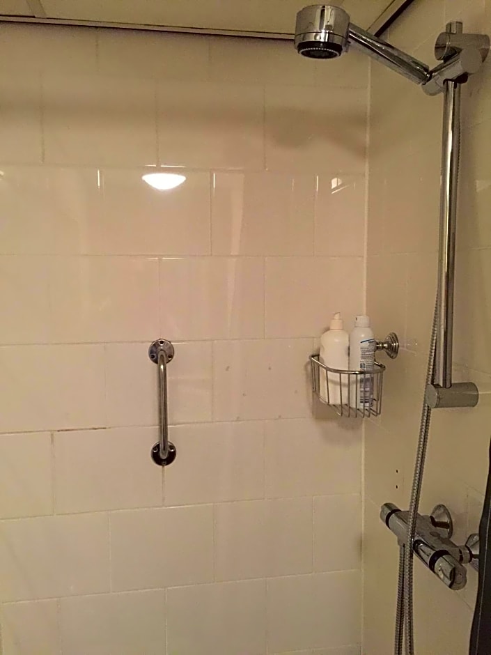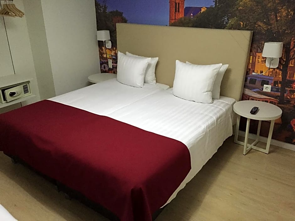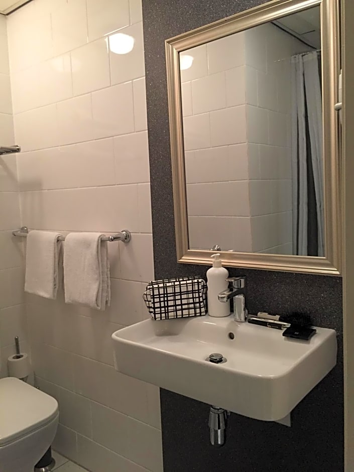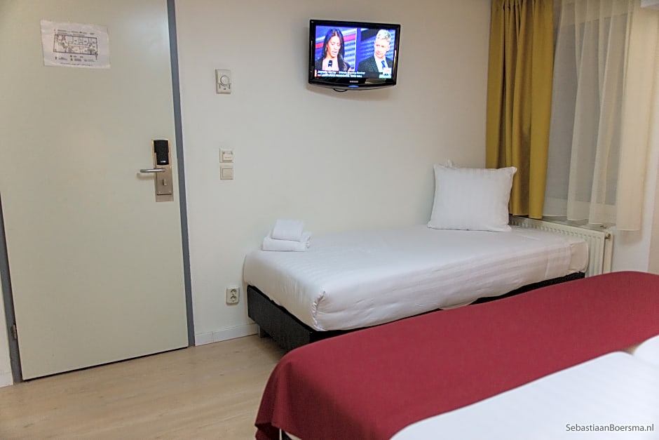The hotel is in a perfect location. It is a 10 minute walk from Central Station and on the bank of the canal. The rooms were basic but very comfortable. The room has has a fridge, safe a desk and a small chair. The bathroom was spacious and the shower was powerful and a good temperature. Down at reception you could use the vending machine. There is also a coffee machine that costs €2. Ahmed was so helpful and very accommodating. The wifi is also good.