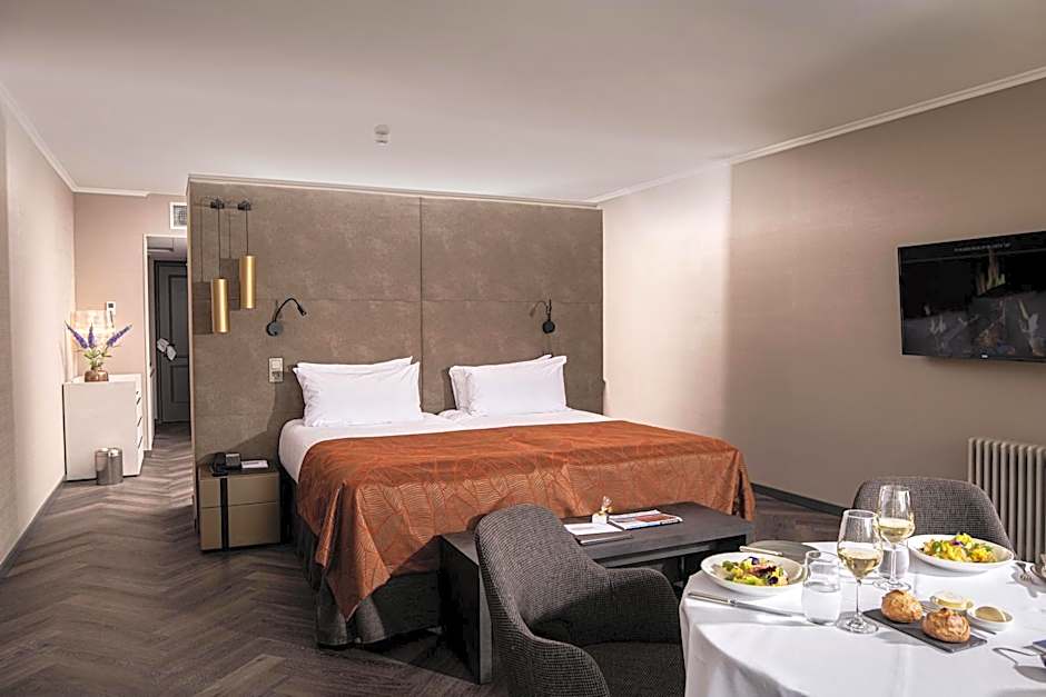 Spacious room featuring a seating area, Nespresso coffee machine and a large bathroom with separate bathtub. Some rooms also offer balconies.