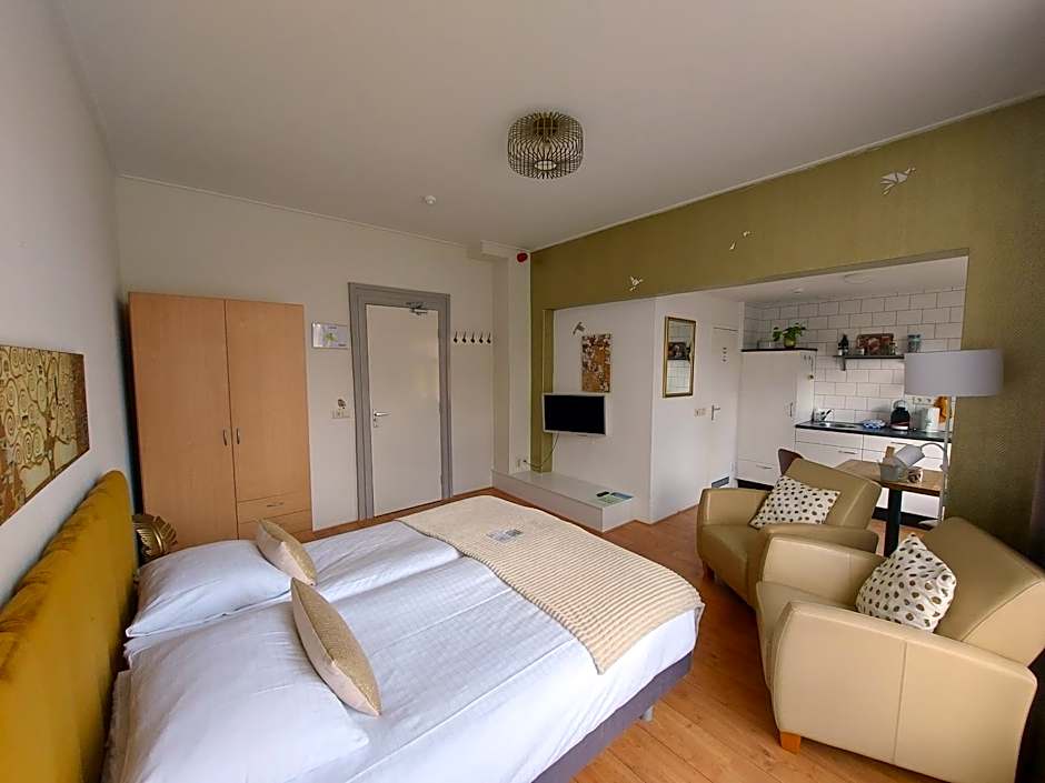 The twin room provides a wardrobe, a sofa, as well as a private bathroom boasting a shower and a hairdryer. Guests can make meals in the kitchen that has a stovetop, a refrigerator and kitchenware. The twin room features a flat-screen TV with cable channels, a tea and coffee maker, a seating area, a dining area as well as a quiet street view. The unit has 1 bed.