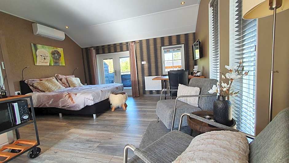 This apartment s equipped with a sitting area, kitchenette, air conditioning, smart TV, box-spring beds, a private bathroom and a private terrace. The deer and alpacas run right around the lodge.