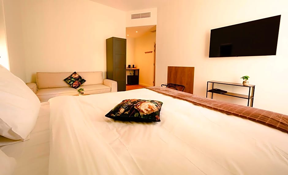 This suite is consisted of of 1 living room, 1 separate bedroom and 1 bathroom with a walk-in shower and free toiletries. The air-conditioned suite offers a flat-screen TV with streaming services, soundproof walls, a tea and coffee maker, a seating area as well as city views. The unit offers 2 beds.