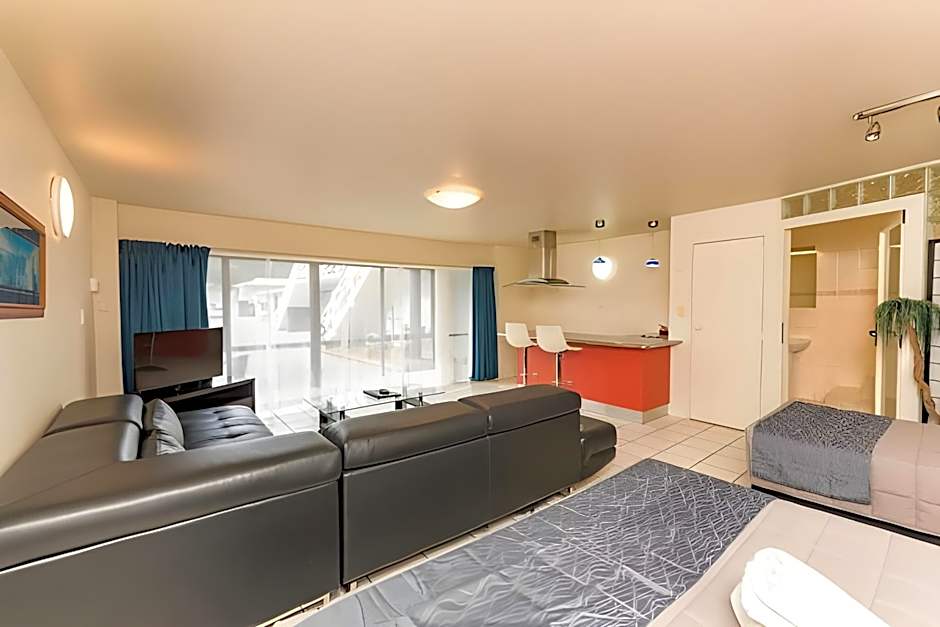 One-bedroom apartment with lounge and kitchen facilities.
