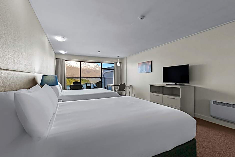 This spacious room features a private balcony offering stunning views over Lake Wakatipu and the Remarkables mountain range. It includes an private bathroom and an in-room safe.