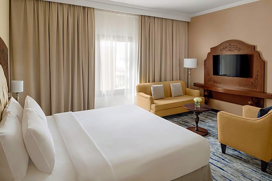 Als de zon ondergaat en u zich klaarmaakt voor de avond, geniet dan van een luxueus verblijf in een van de elegante suites of comfortabele kamers. Kies uw paradijs, van een Junior Suite met tuinzicht en balkon tot een ruime King Room, perfect voor een romantisch uitje of een gezinsvakantie. Elke kamer is ontworpen voor ontspanning, zodat u na een dag vol onvergetelijke avonturen verzekerd bent van een goede nachtrust. Of uw plan nu is de levendige lokale cultuur te verkennen of gewoon achterover te leunen en alles in u op te nemen, het Crowne Plaza Riyadh Al Waha is uw ideale reispartner!
