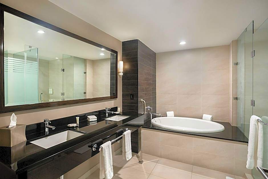 The suite provides a tea and coffee maker and city views. The unit offers 1 bed.