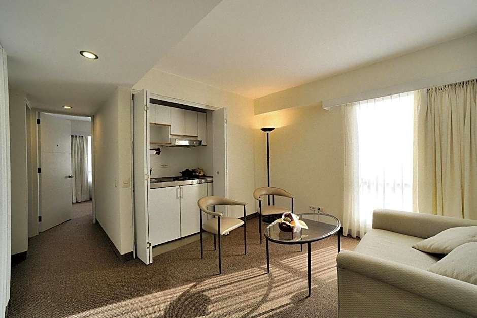 This apartment has 3 rooms: 1 living room and 2 bedrooms. Each bedroom has air conditioning, LCD satellite TV, iPod dock, and mini-bar. There are 2 bathrooms with bathrobe and hairdryer.
