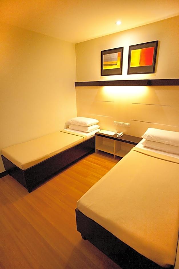 This double room features a queen-sized bed, individually-controlled air conditioning, a 23-inch LCD cable TV, complimentary bottled water and private bathroom with hot/cold shower.