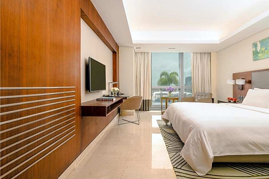 This air-conditioned suite has its own living area with sofa and a 40-inch flat-screen TV with cable channels. It also comes with a dining area and a mini-bar. A working desk, a wardrobe, and a safety deposit box is also included in the room. The private bathroom includes a bathtub and slippers while bathrobes are available upon request.