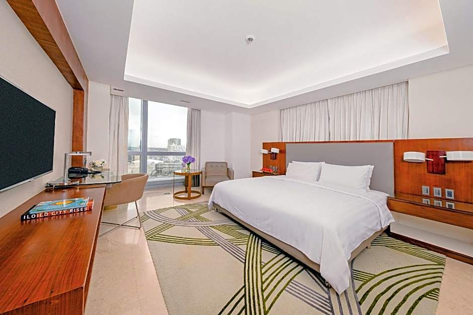 Richmonde Hotel Iloilo offers Deluxe King Rooms for single occupancy with a King size bed, accommodating 1 adult. These rooms are non-smoking and have a room size of 388 sqft. The hotel also has Deluxe Rooms which can accommodate 2 adults and 1 child with 3 Double beds, also non-smoking and with the same room size.