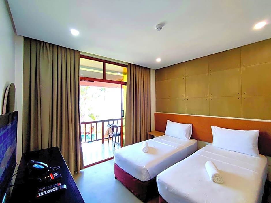 The twin room offers air conditioning, a wardrobe, a balcony with pool views as well as a private bathroom boasting a bath. The unit has 2 beds.
